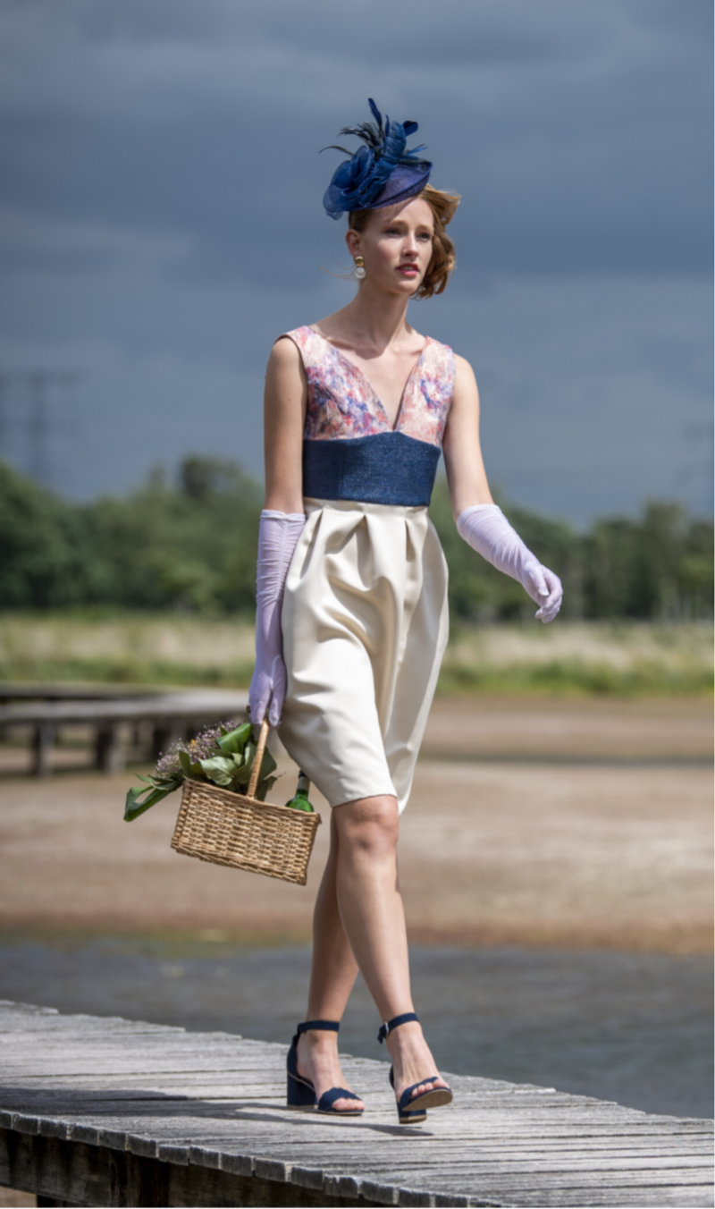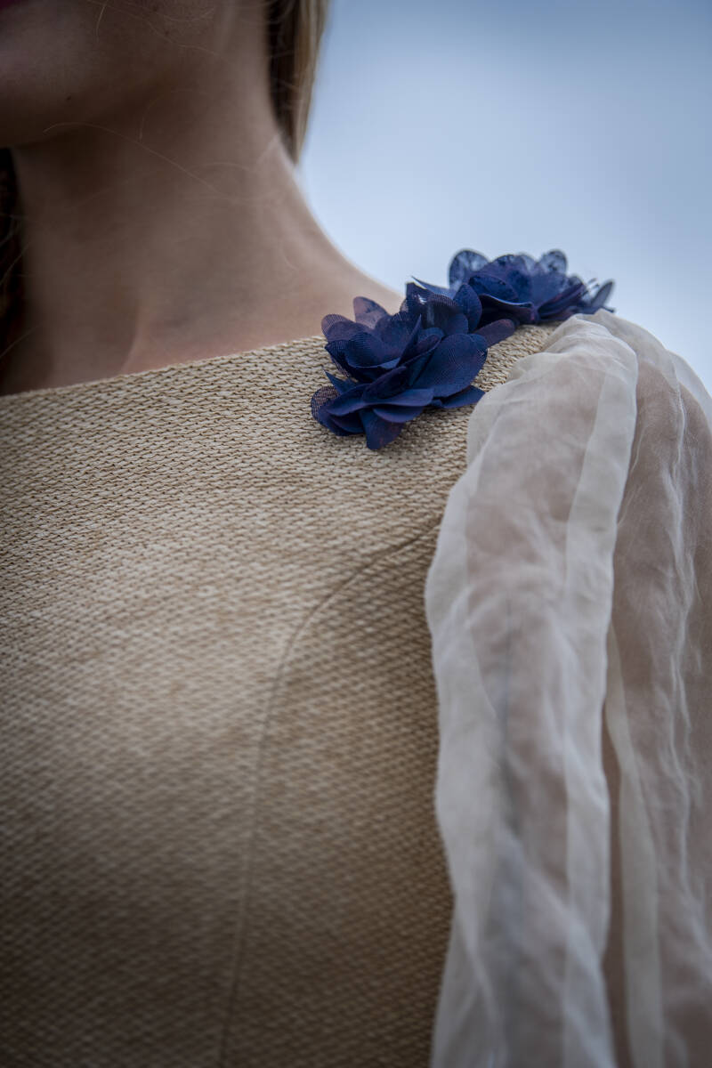Mijn collectie staat voor veerkracht. De kleurtinten beige, blauw en koraal komen hierin terug. Ze staan voor nostalgie, vrijheid, harmonie, kracht en zachtheid. De stoffen zijn geïnspireerd op de natuur. De natuur past zich moeiteloos aan de omstandigheden aan, waardoor in ieder natuurelement veerkracht zit. Wij als mensen bezitten ook veerkracht, de een meer dan de ander. Jezelf niet uit het veld laten slaan bij tegenslagen, maar steeds weer met nieuwe kracht aan te gaan! In mijn collectie proef je een mix van vintage & nostalgie uit de jaren’50 maar ook de veerkracht van de vrouw, dat vooral naar voren komt in het silhouet van elk, uniek kledingstuk.